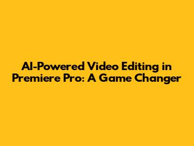 AI-Powered Video Editing In Premiere Pro: A Game Changer