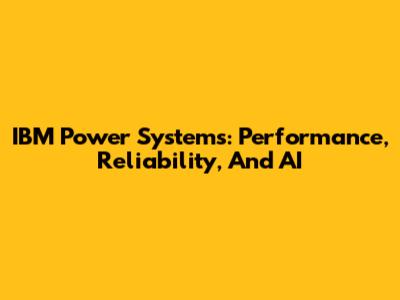 IBM Power Systems: Performance, Reliability, And AI