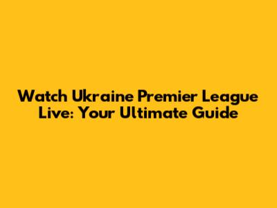 Watch Ukraine Premier League Live: Your Ultimate Guide