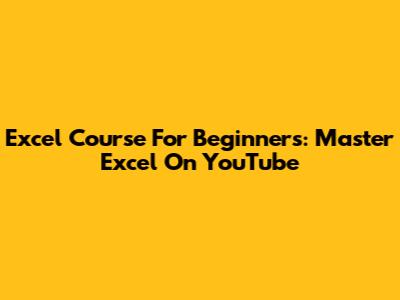 Excel Course For Beginners: Master Excel On YouTube