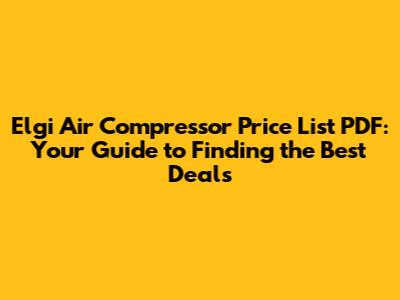 Finding an Elgi air compressor price list PDF and securing the best deal requires research, comparison, and negotiation. By understanding the different types of Elgi compressors, knowing where to find price lists, and considering the factors that influence pricing, you can make an informed decision and get the right compressor for your needs. So go forth, do your homework, and happy compressing!