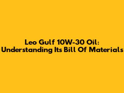 Leo Gulf 10W-30 Oil: Understanding Its Bill Of Materials