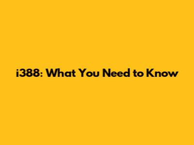 I388: What You Need To Know