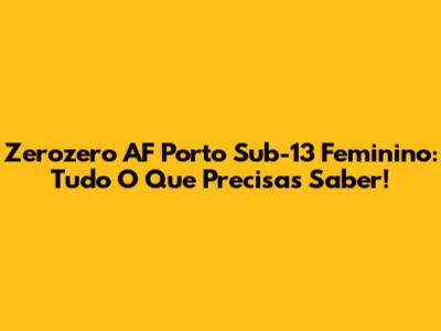 Zerozero AF Porto Sub-13 Feminino: Tudo O Que Precisas Saber!