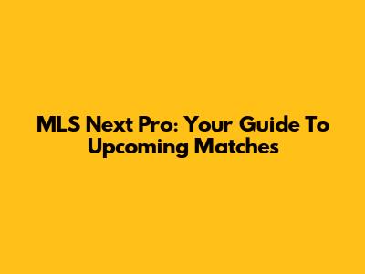 MLS Next Pro: Your Guide To Upcoming Matches