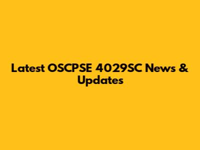 Latest OSCPSE 4029SC News & Updates