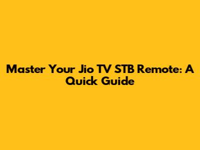 Master Your Jio TV STB Remote: A Quick Guide