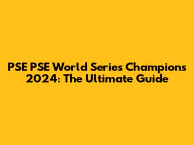 PSE PSE World Series Champions 2024: The Ultimate Guide