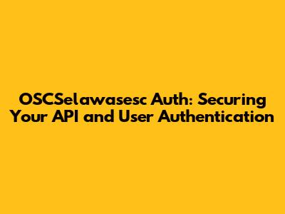 OSCSelawasesc Auth: Securing Your API And User Authentication