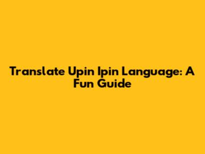 Translate Upin Ipin Language: A Fun Guide