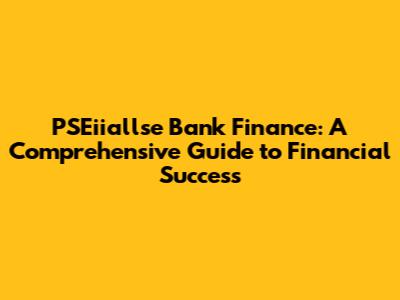 PSEiiallse Bank Finance: A Comprehensive Guide