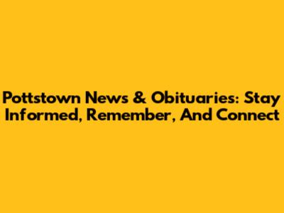 Pottstown News & Obituaries: Stay Informed, Remember, And Connect