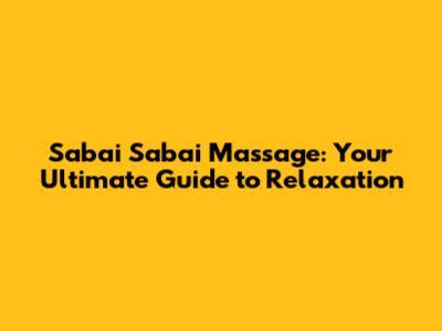 Hey there, massage enthusiasts! Ever dreamt of sinking into a world of pure relaxation, where your worries melt away like ice cream on a summer day? If you're nodding your head, then you're in the right place! We're diving deep into the world of Sabai Sabai massage, exploring everything from what makes it so special to, most importantly, where you can find this slice of paradise. Get ready to embark on a journey of discovery, because by the end of this guide, you'll be well-equipped to locate a Sabai Sabai massage near you and treat yourself to an unforgettable experience. Trust me, your body (and mind!) will thank you.