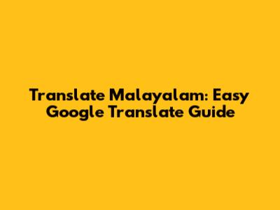 Translate Malayalam: Easy Google Translate Guide