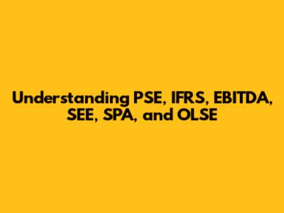 Navigating the world of finance and business can sometimes feel like deciphering a secret code. There are so many acronyms and specific terms that it's easy to get lost in the jargon. In this article, we're going to break down some key concepts: PSE, IFRS, EBITDA, SEE, SPA, and OLSE. By the end, you'll have a clearer understanding of what these terms mean and how they're used in the business world. Let's dive in!