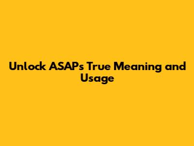 Unlock ASAP's True Meaning And Usage