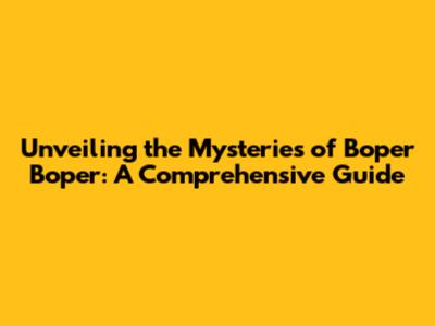 Understanding the Basics: What Exactly is Boper Boper?